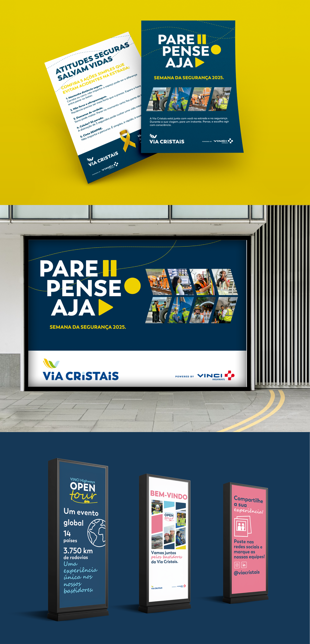 Para a Semana da Segurança da Via Cristais, desenvolvemos ações de comunicação e eventos de conscientização junto aos motoristas da rodovia e aos estudantes das escolas do trecho. A Via Cristais é a concessionária de pedágio da BR-040, entre Belo Horizonte-MG e Cristalina-GO. Ela integra o portfólio da holding francesa Vinci Highways.